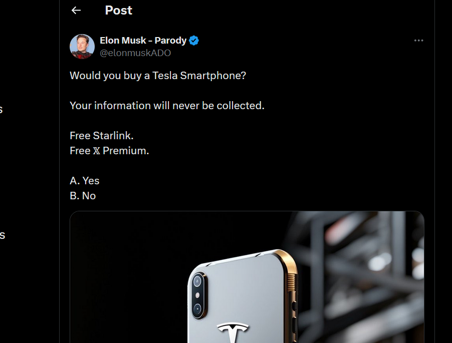 That was posted by a Parody Account of Elon Musk of Tesla, global leader in electric mobility.